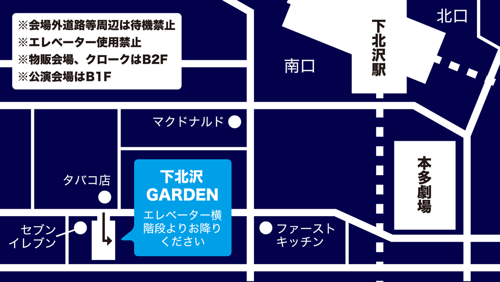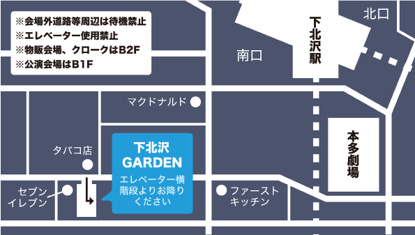 〒155-0031 東京都世田谷区北沢2-4-5 mosia B1F (アクセス) 小田急線・京王井の頭線 「下北沢」駅 南口より徒歩2分 別途ドリンク代600円が必要になります。 |
